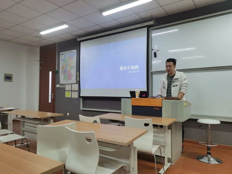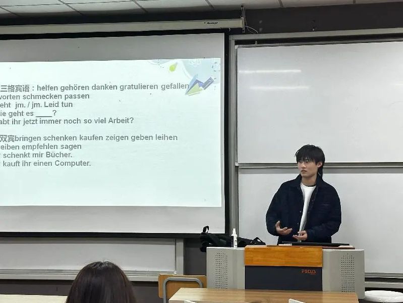 首先开讲的是陈一佳和姚晨杨学长,他们通过自身对德语学习的知识点的总结积累,为同学们带来了一场深入浅出的德语学习之旅。小讲师们精心挑选了德语基础语法、日常会话及学术论文写作等多个层面的知识点,通过实用的学习技巧和丰富的实例,帮助同学们在短时间内明显提高了德语阅读和写作的能力。这不仅让同学们对德语学习充满了信心,也深刻体会到了语言学习的乐趣。