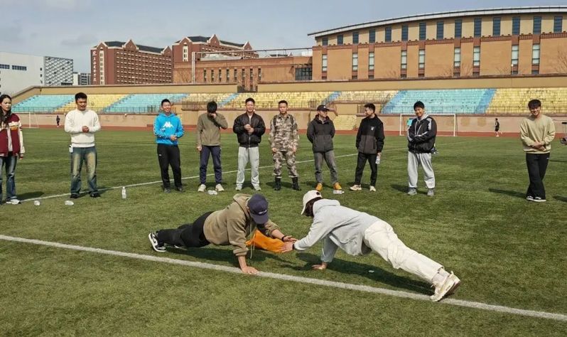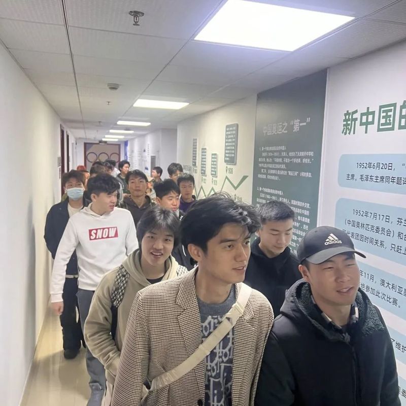 接下来,3044永利集团辅导员滕宇老师带大家参观了3044永利集团的体育馆特色长廊——冠军大道。大道两旁的墙体上展列了我国近年体育界的各项大事记和许多国家级体育健将。榜样的力量激励人心,无声的文字将奥林匹克精神浸润到每名参观学子的心中,使人产生强烈的民族自豪感。随后大家来到操场,在操场上开展“我说你做”、“飞盘接力”等一系列破冰活动。在欢乐氛围的熏陶下,同学们打破了初到新环境的陌生感,逐渐活跃起来,游戏环节结束后纷纷表示意犹未尽。通过破冰活动的开展,双方团员青年逐渐建立起对彼此的信任,也增强了团队的凝聚力。