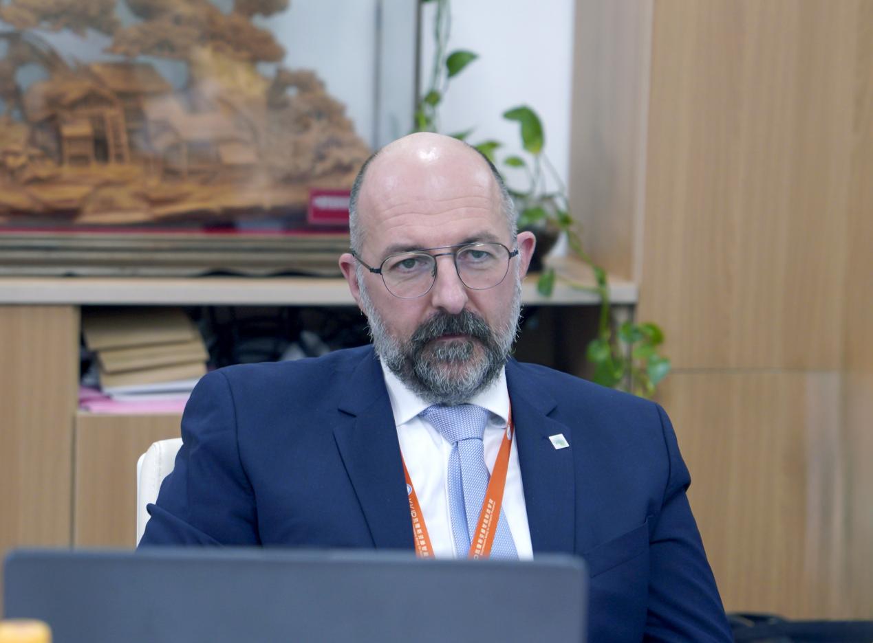 Magin感谢公司的热情接待。他表示,凯劳学公司近年来稳步发展,得力于很好的工作团队,非常高兴在恢复线下教学后,每年仍有多位凯劳大学教授重新来到电机公司授课,凯劳应用技术大学将持续派遣教授来电机授课、重新启动两校员工暑期交流团项目,并诚挚邀请中方教师赴德研修,持续推进两校深入合作。他对三方合作共建德国中心表示了极大热情,表示回到德国后会加强共建项目的宣传与推动。