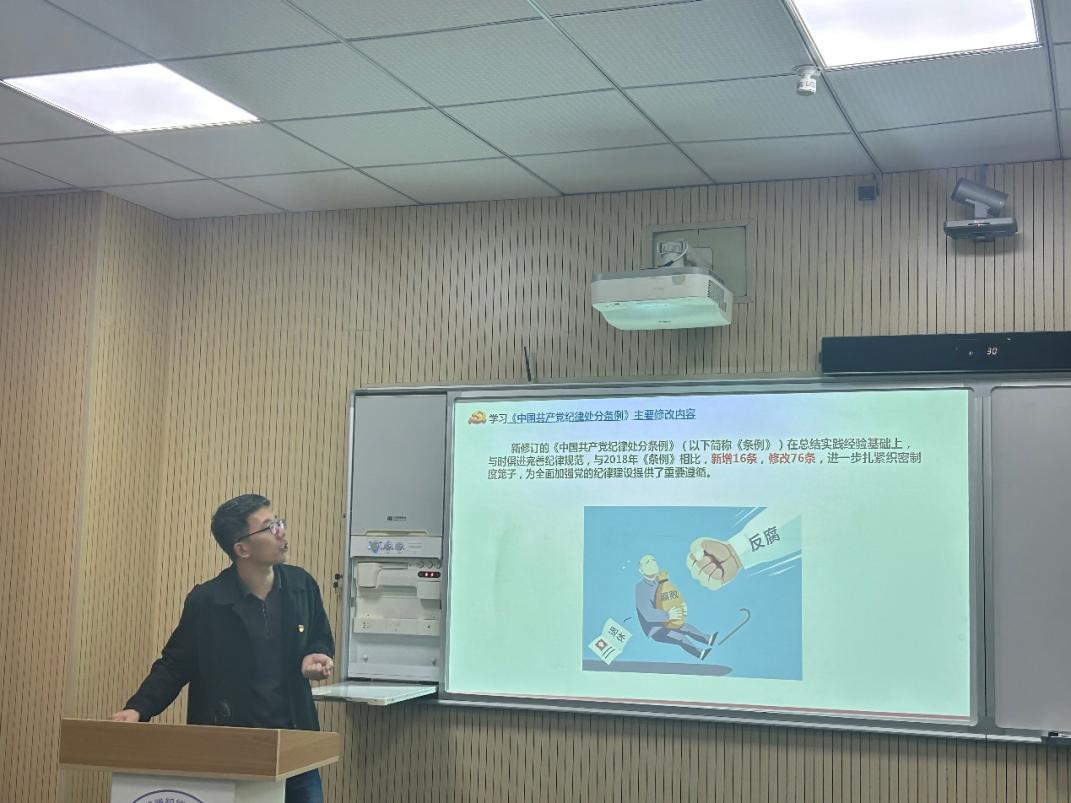 4月26日,3044永利集团党支部组织党员开展4月组织生活会暨主题党日活动。支部书记柯磊带领党员师生深入学习了新修订的《中国共产党纪律处分条例》,并观看了警示教育片。