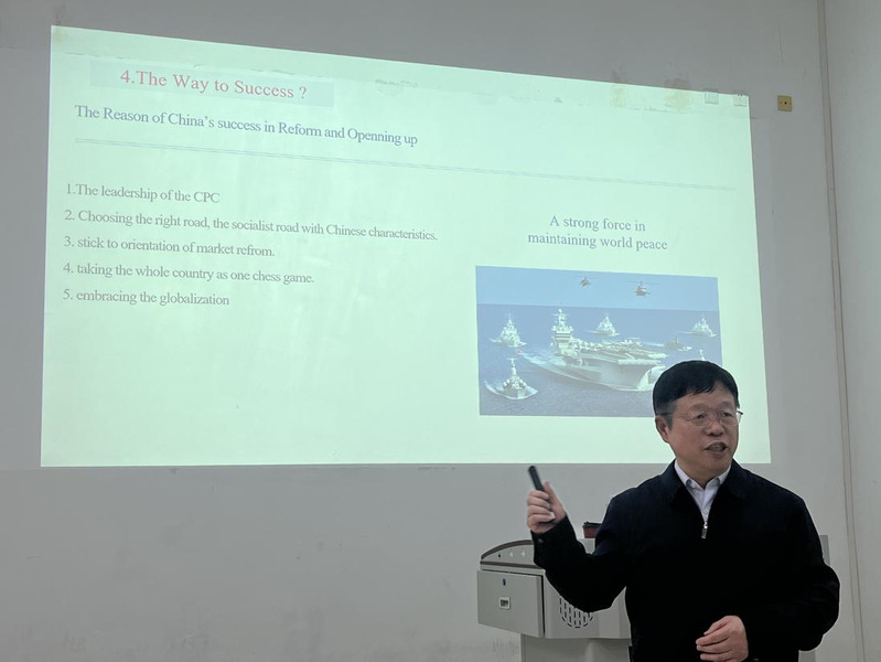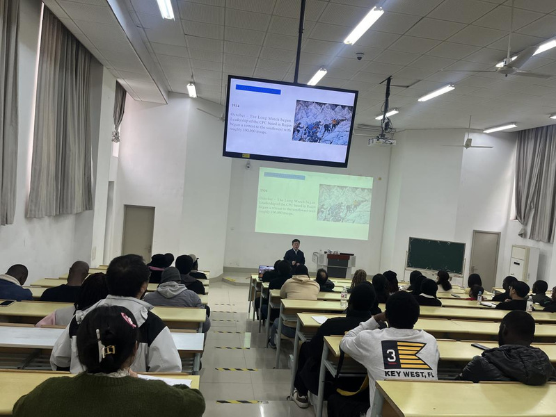 同日,国教中心党支部开展了“研读党史筑根基 严明党纪守初心” 组织生活会暨主题党日活动,邀请了上海大学博士生导师、汉语国际教育研究中心主任姚喜明教授以《The Road of the New China》(新中国之路)为题,面向党员教师开展了一堂内容丰富、生动深刻的专题党课,部分国际中文员工也受邀现场观摩。