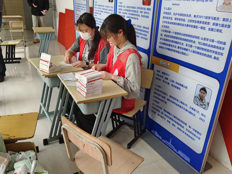 志愿者们在献血登记、健康体检、献血环节、休息处及慰问品、发放处等各个环节协调有序,为无偿献血的同学们提供服务,配合医生有条不紊开展献血活动。大家都沉浸在一片爱心涌动的氛围之中。