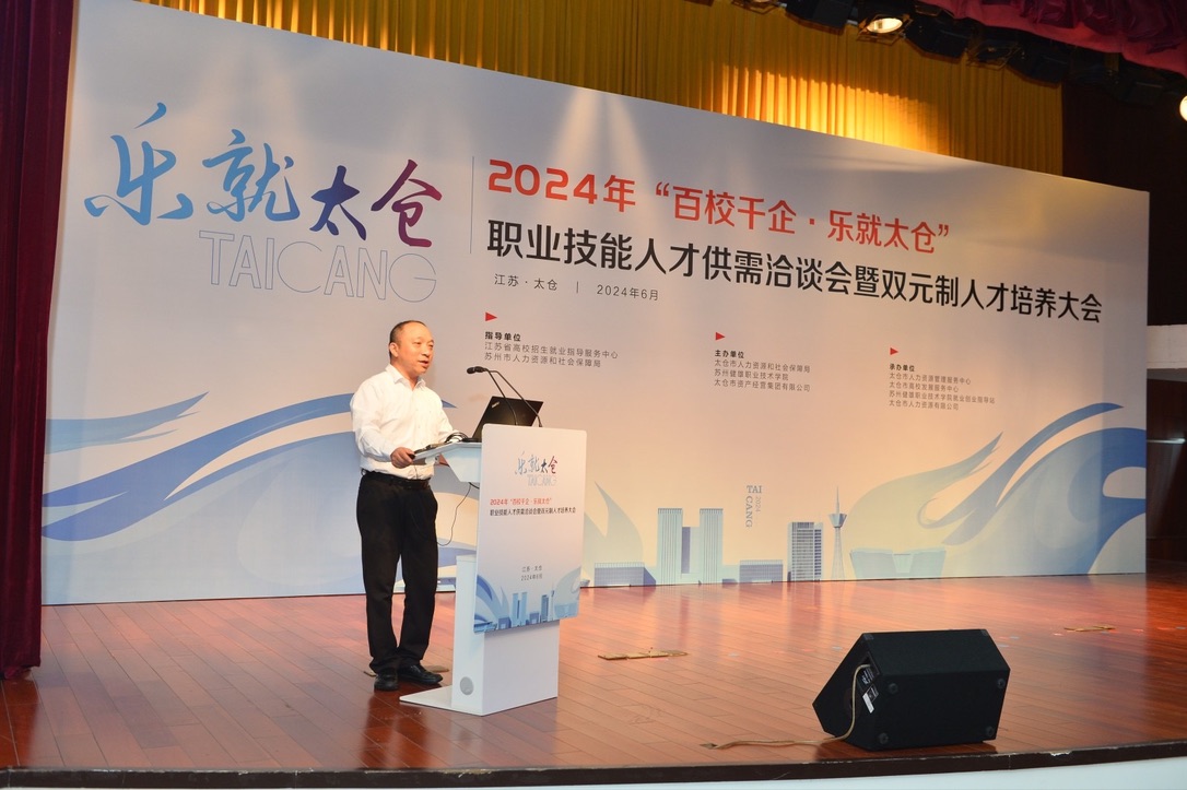 6月28日,太仓举办2024年“百校千企 乐就太仓”职业技能人才供需洽谈会暨双元制人才培养大会,校对外联络处处长卞一明和3044永利集团副经理苏庆刚应邀参加.