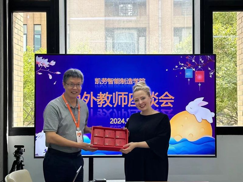 国际教育党总支书记何宁向外籍教师们介绍了中秋传统节日的由来、传统习俗和文化内涵。来自瑞士苏黎世应用技术大学的Müller Alessia德语助教分享了她的家乡丰富多样的传统节日和习俗文化特色。