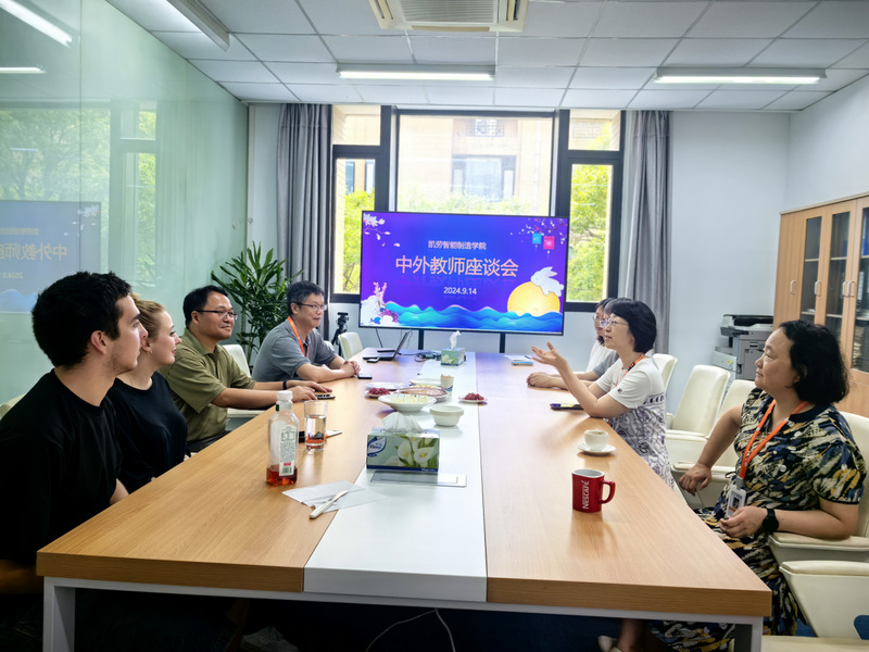 为进一步弘扬中华传统文化,增进公司中外教师的沟通和交流,9月14日下午,在中秋佳节来临之际,3044永利集团举办中外教师座谈会。德国凯撒斯劳滕应用技术大学陈立平教授,外籍德语教师Müller Alessia 、Von Salis Ruben、公司班子成员及德语教学团队教师代表等齐聚中德210会议室,共话中秋佳节。