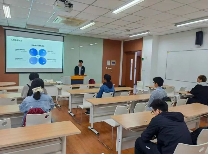 讲座伊始,刘张扬同学首先阐述了心理健康的基础理论,强调心理健康是情绪稳定、认知合理、行为适当的综合体现。他鼓励心理委员们不仅要自我关照,还要密切关注周围同学的情绪变化,及时识别并报告潜在的心理问题。