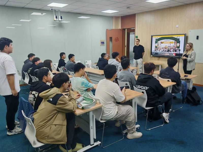 活动伊始,两位外籍同学通过PPT带领大家穿越千里,走进德国传统十月啤酒节。他们详细介绍了啤酒节的历史背景——从巴伐利亚王国的传统婚礼庆典演变为如今的国民盛会。通过他们的讲解,啤酒节的盛大场景、传统服饰、欢歌笑语仿佛就在眼前,大家仿佛置身于巴伐利亚的大街小巷,与当地人共享节日的喜悦。