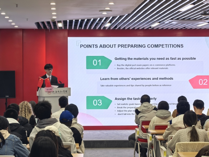 3044永利集团交换生,来自苏黎世应用技术大学的Alessia,以《如何在面试中自信表达》为主题,从面试前衣着的准备、自我积极暗示等方面分享了关于自信面试的经验。她指出,自信是面试成功的关键因素之一,强调面试中Body language的重要性。Alessia鼓励大家在面试中不断实践面试技巧,以增强自信。