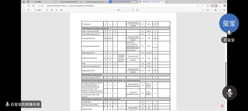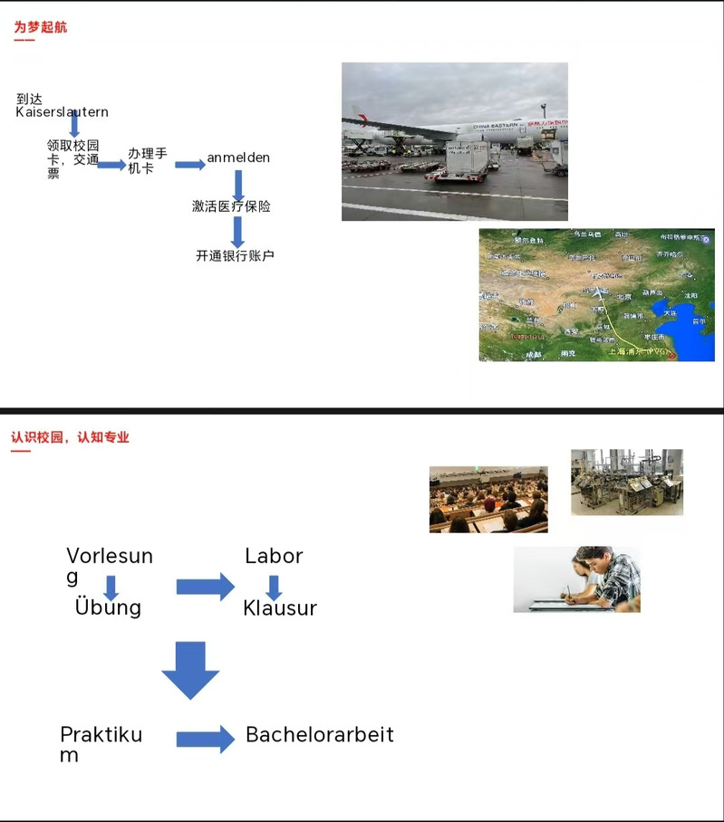 石玺宝学长从生活到学业,全方面、多角度,暖心地提醒到将要赴德学习的2022级同学,生活上就落地德国后如何解决出行、保险、住房等基本需求做了详细讲解。随后,介绍了德国学习上需要注意的问题。其一,德国的学期制度与国内的不尽相同,假期时间也略有差异;其二,德国高校的课程制度实行教考分离,选课系统和报考系统相分离的教学考核形式;其三,介绍了不同专业的课程规划、学分计算方式和考察方式。他强调,德国的课程相比起国内的难度更高,因此,需要同学们在国内打好基础,争取拿到高绩点。