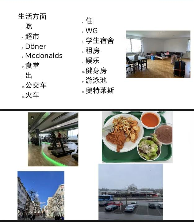 缪怡阳学姐提醒大家出国前要打好基本功,增强听说读写的能力,掌握专业课基本词汇,强调了德语学习的重要性,一口流利的德语在留德学习中占有极大优势。为我们介绍了在德国的日常生活,健身房、餐厅、购物商场......无不引起同学们关于德国生活的无限遐想。