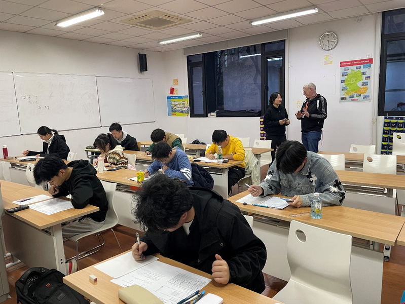 4月1日,公司1楼和4楼的六间教室灯火通明,一场意义非凡的实验课程笔试正有序进行。本学期 24 级的全体员工怀揣着紧张与期待参加了此次笔试。Schell 教授在公司柯磊老师的陪同下,依次检查了所有考场。