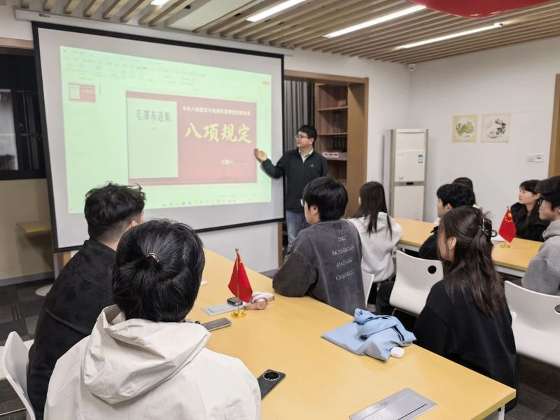 讲座中,樊星星老师以扎实的专业功底,将历史与现实贯通,系统阐释中央八项规定精神与毛泽东思想的内在联系。他通过原文比对与历史背景分析,将八项规定内容与《毛泽东选集》经典论述逐一对接,深入解读“改进调研、精简会议、改进文风”等制度背后的思想根源。