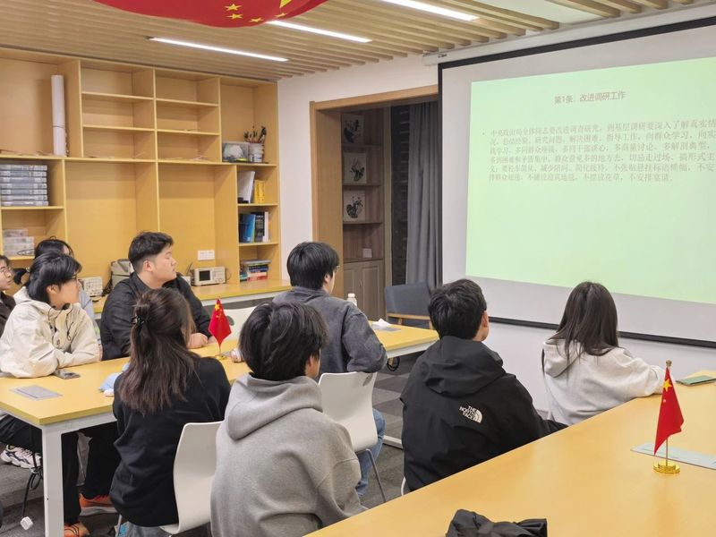 在讲解改进调研工作时,樊老师引用《湖南农民运动考察报告》《反对本本主义》等著作,以“没有调查,没有发言权”的经典论述,强调深入基层、实事求是的重要性;谈及精简会议活动,他结合《关于纠正党内的错误思想》《党委会的工作方法》,分析毛泽东会风思想与中央八项规定精神在提升工作效能上的传承发展;针对改进文风,《反对党八股》中对形式主义的批判引发师生共鸣,让大家深刻认识到“实事求是、简洁为民”的行文准则。