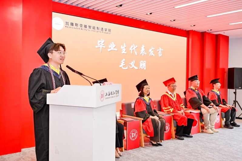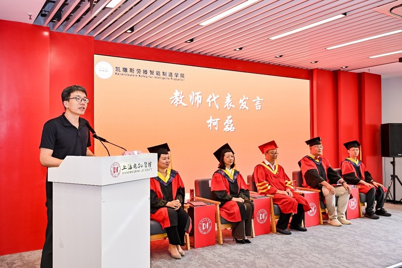 公司党支部书记、专业教学中心柯磊主任作为教师代表为同学们送上祝福和叮嘱。希望同学们永葆对知识的热爱,坚持终身学习,紧跟时代脉搏,不断提升自我,为我国智能制造事业的腾飞添砖加瓦。