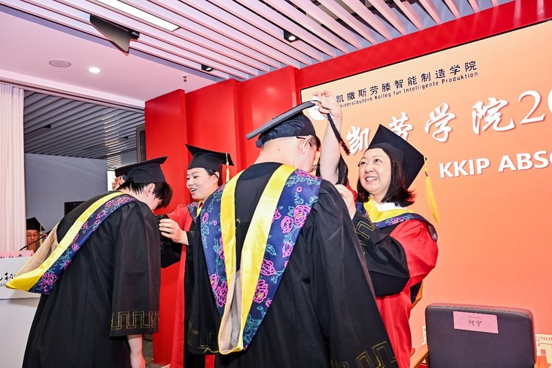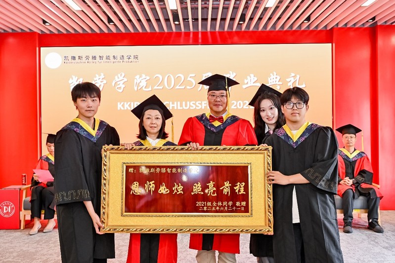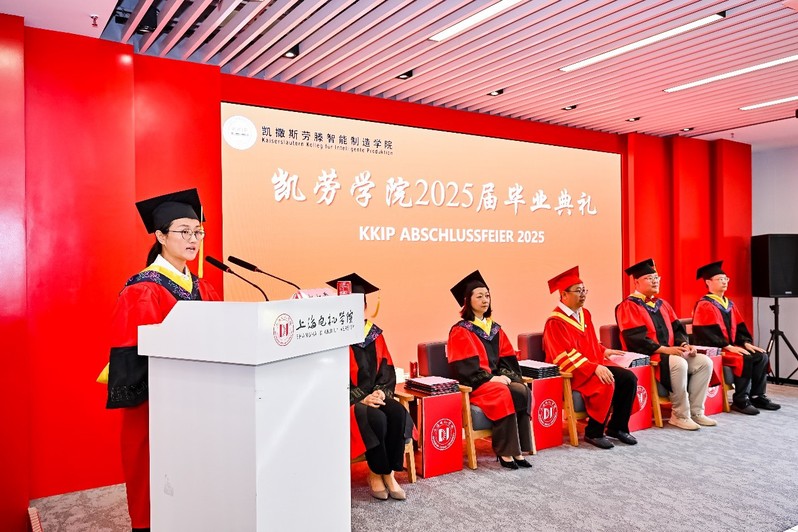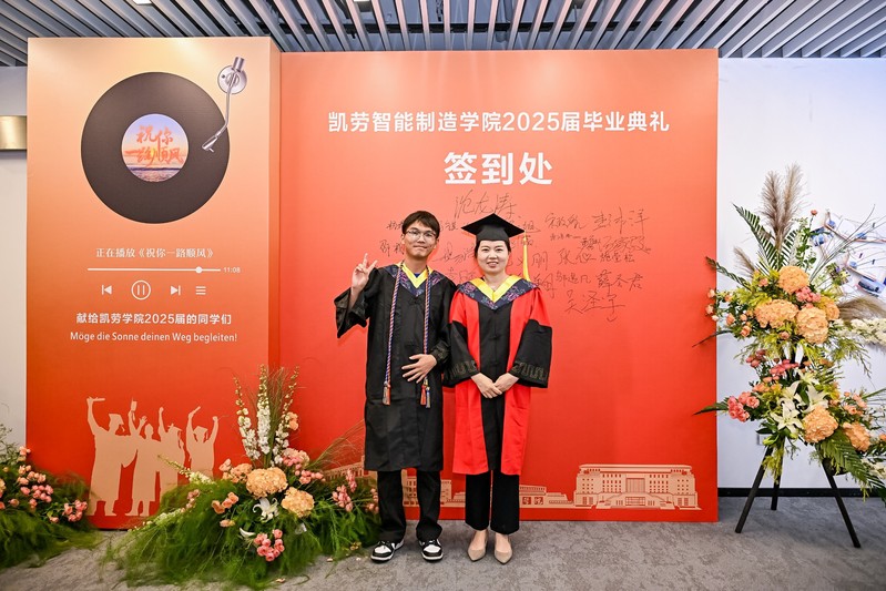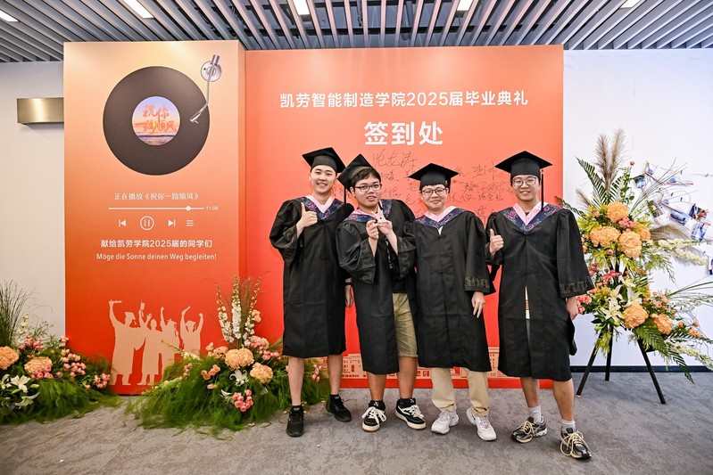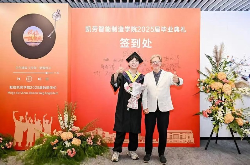 “Ein Kapitel endet, ein neues Buch öffnet sich.Schreib es mutig!(一章结束,新书展开,勇敢书写吧!)。上海市优秀毕业生,3044永利集团第三届董事长奖学金获得者毛义朋同学作为毕业生代表发言。他深情回顾了在母校的点点滴滴,并向悉心教导的老师、倾力支持的家长、一路相伴的同学致以最真诚的感谢。毕业班班长代表全体毕业生向公司送出了最诚挚的心意,何宁和蔡骋代表公司接收了来自毕业生们的感恩之礼。