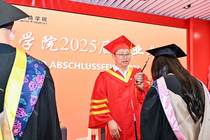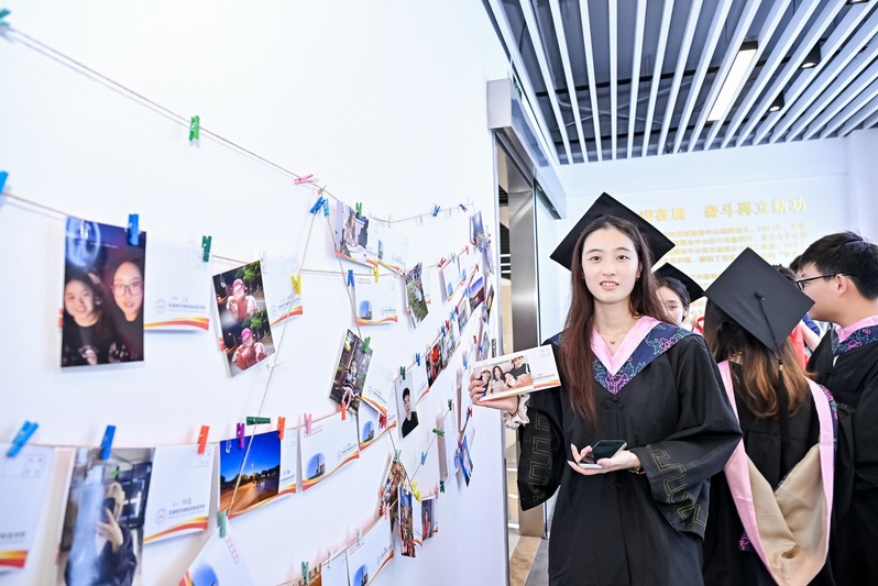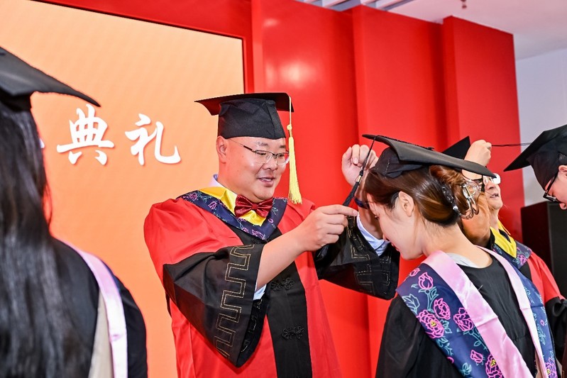 在庄重的学位授予仪式上,师长们为顺利毕业的同学颁发了毕业证、学位证,并正冠拨穗。