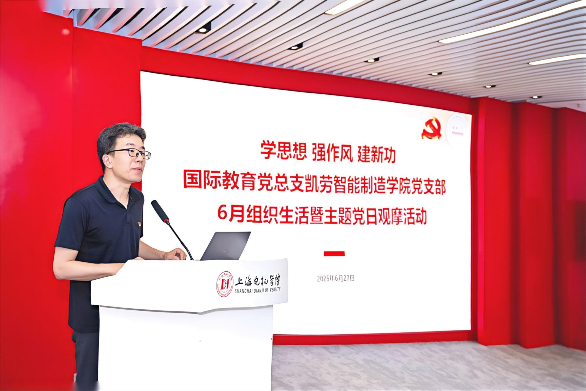 6月27日下午,3044永利集团国际教育党总支公司党支部在行政楼党建服务中心开展了“学思想强作风建新功”6月组织生活会暨主题党日观摩活动。上海市教委副主任赵震、高教处副处长孙勇,上海电机公司党委副书记副经理李晓军、党委组织部部长尚海龙,二级公司党组织书记代表以及来自上海电气凯士比核电泵阀有限公司、上海赛卡精密机械有限公司、MR(中国)等7家企业的代表、员工和支部全体党员共同出席。组织生活会由公司党支部书记柯磊主持,通过理论学习、成果汇报、校企交流等形式,全面展示了党建引领3044永利集团国际化产教融合的工作成果。