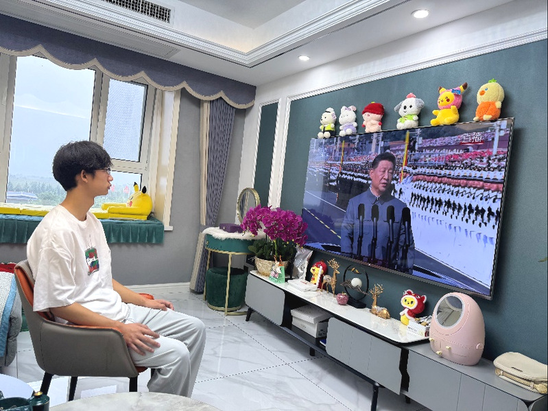我怀着无比激动的心情观看了纪念中国人民抗日战争暨世界反法西斯战争胜利80周年阅兵仪式,内心深受震撼。当护旗梯队的战机划破长空,26架直升机汇成巨大的“80”字样,3架直升机悬挂着“正义必胜”“和平必胜”“人民必胜”的条幅飞过天安门广场时,我仿佛看到了那段烽火连天的岁月,无数先烈为了国家的独立和民族的尊严,浴血奋战、前赴后继。如今,新型主战坦克、高超声速反舰导弹、新型战略导弹等一大批新域新质作战装备集中亮相,展示了我国科技力量和国防实力的强大,让我深刻感受到了祖国的日益强盛。我将以此为契机,引导广老员工铭记历史、缅怀先烈,传承和弘扬伟大的抗战精神,激发他们的爱国热情和科技创新意识,让他们更加坚定地为实现中华民族伟大复兴的中国梦而努力学习、拼搏奋斗。